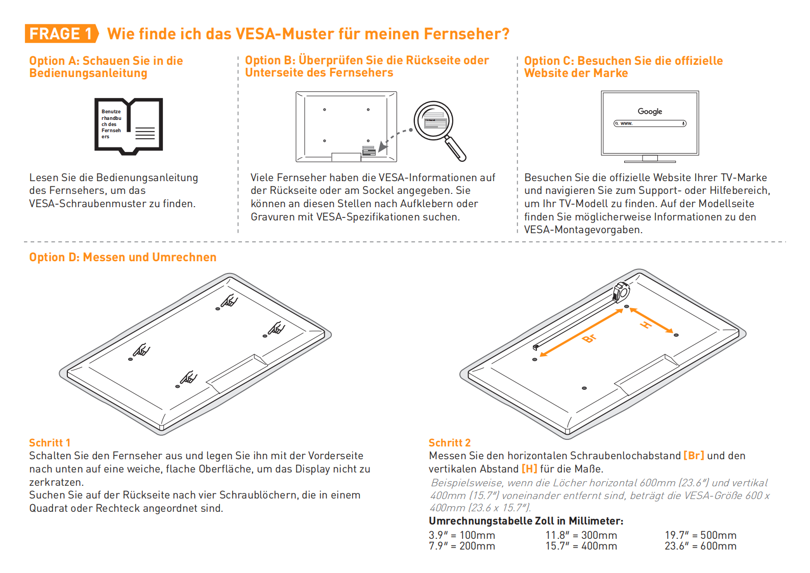 1. Wie finde ich das Vesa-Muster für meinen TV?