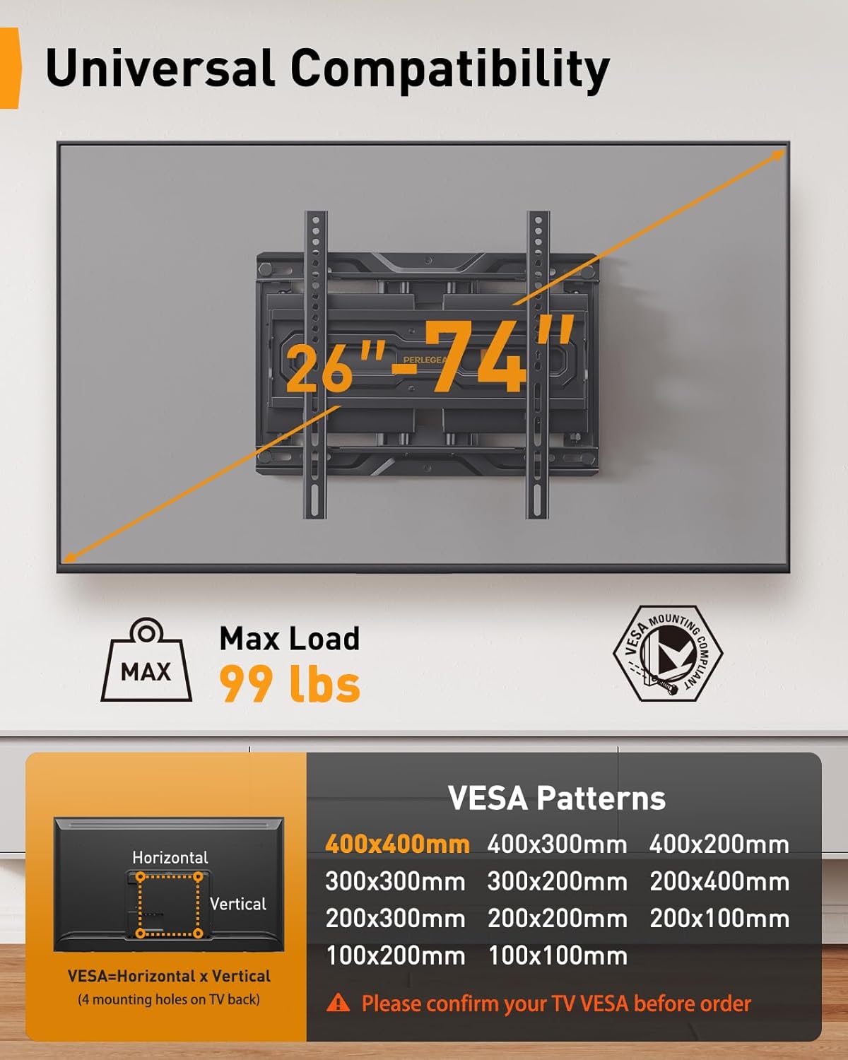 Perlegear Full Motion TV Mount | Enjoy Ultimate Screen Flexibility